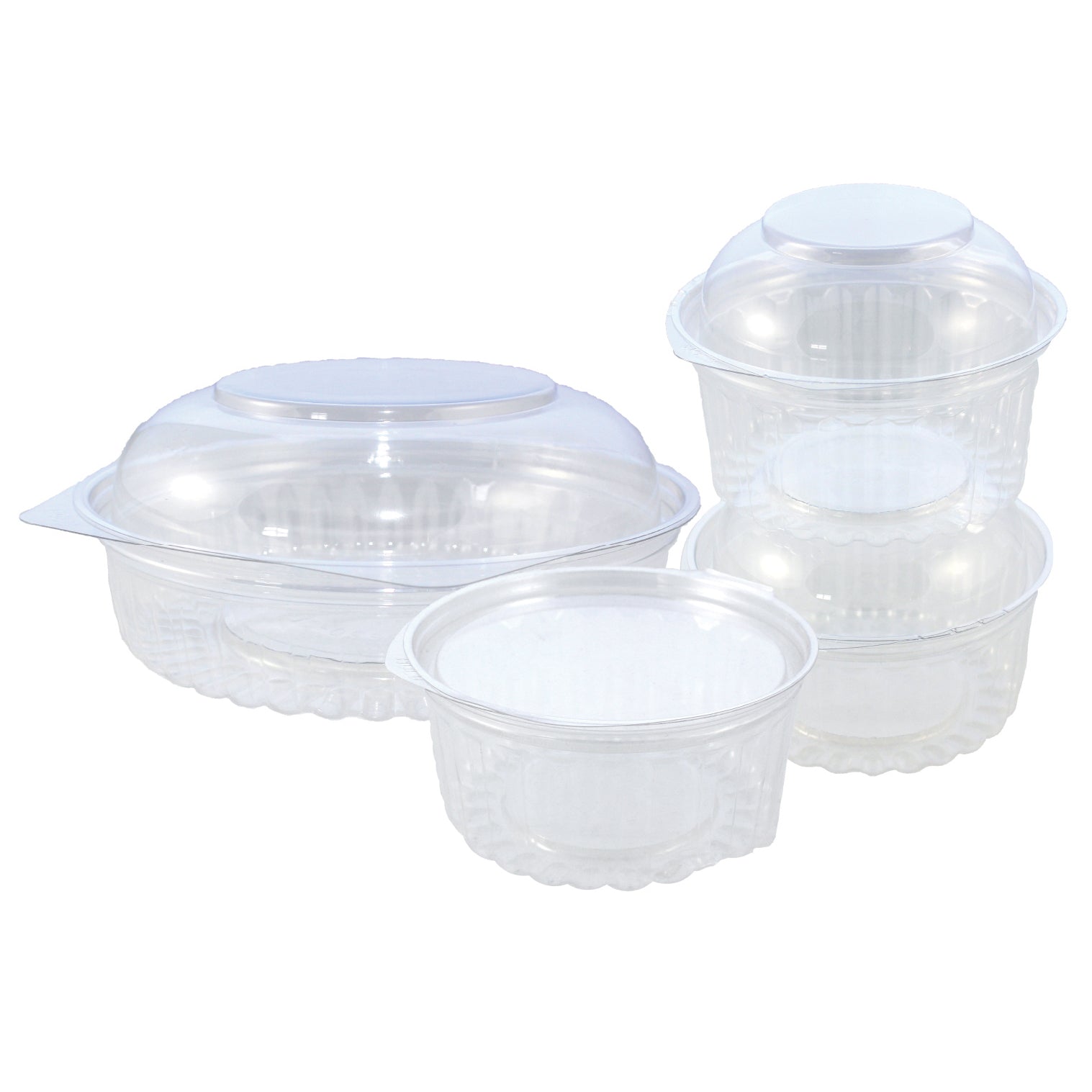Round Containers with Hinged Dome & Flat Lid (Showbowls)